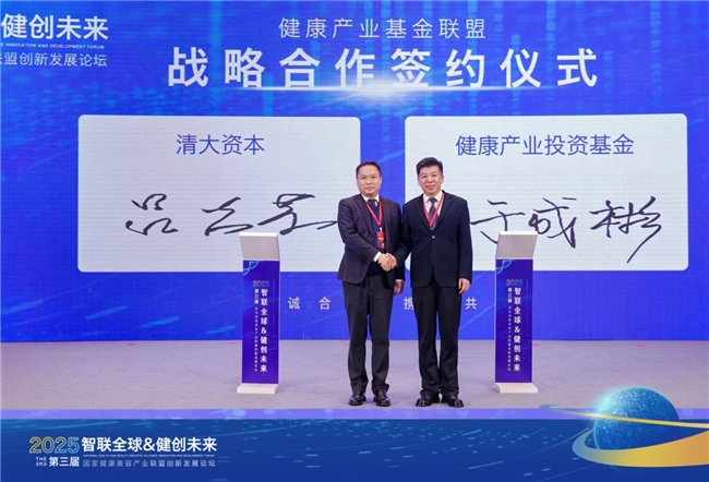 论坛现场,"健康消费产业投资联盟"正式启动,清大资产与健康产业投资基金完成战略签约,标志着健康美容产业迈向"资本+生态"协同发展的新阶段。该联盟将致力于构建产业与资本深度融合的创新平台,为健康美容产业高质量发展注入持续动能。